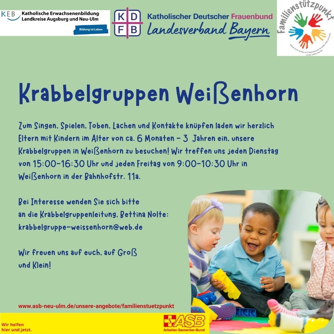 Die Eltern-Kind-Gruppen sind ein Kooperationsprojekt mit der „Katholischen Erwachsenenbildung für den Landkreis Neu-Ulm KEB“,  des „Katholischen Frauenbundes Landesverband Bayern“ und des Familienstützpunkts!